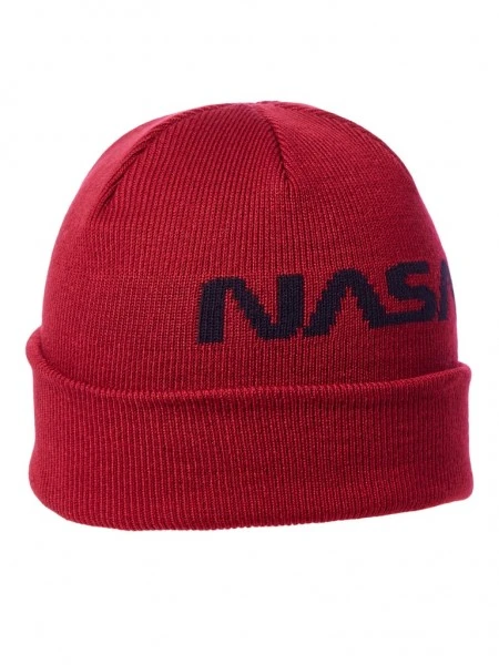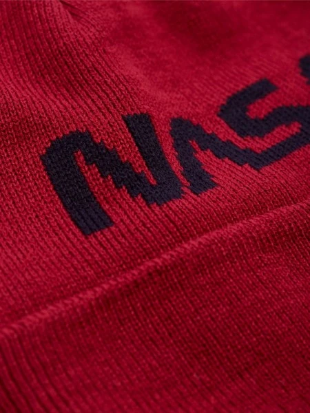 – Isolierende Strickbeanie- Umgeschlagener Rand- NASA-Stickerei vorn- Allover-Rippmuster