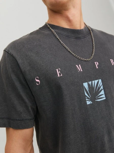 – Detailart: T-Shirt- PASSFORM: Oversize Fit- AUSSCHNITTFORM: Rundhalsausschnitt- Stoff: Jersey mit weichem Tragegefühl- Anlass/Styling: Cooles und lässiges T-Shirt- Printart: Weicher Gummiprint- Wash/Finish: Stonewash für einen abgenutzten Used-Look- ÄRMELLÄNGE: Kurze Ärmel- Das Model trägt Größe L und ist 186 cm groß- JACK & JONES