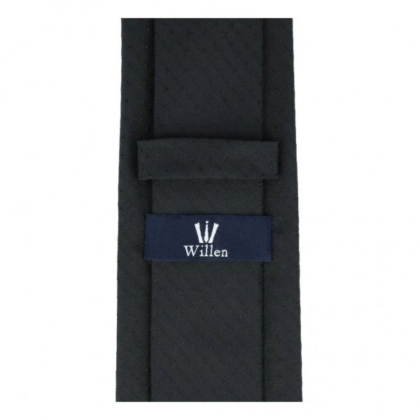 Bei diesem Modell handelt es sich um eine schlichte Trauer Krawatte in Schwarz. Der unifarbene Binder verfügt über eine feine Punktstruktur und eine angenehme Haptik. Er lässt sich sehr gut zu schwarzen Anzügen kombinieren und wirkt edel und dezent zugleich.